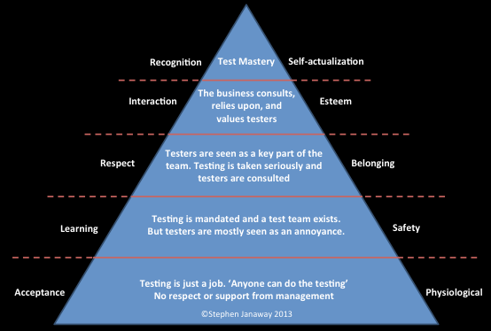 It’s all about considering building blocks. How do we fit the pieces together? How do we build a different kind of model to help us understand ourselves and our testers? Well I think Maslow’s work can help us out here. It can give us a framework.